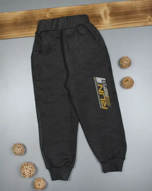 خرید عمده شلوار راحتی پسرانه ملانژ طرح RUN FASTER کد 9944