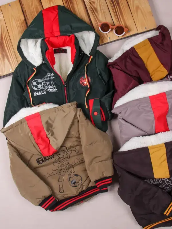 خرید عمده کاپشن پسرانه طرح توپ و تور با آستر پشمی