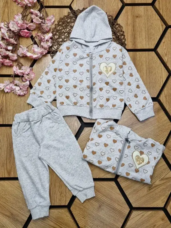 ست سویشرت و شلوار پسرانه طرح قلب ملانژ