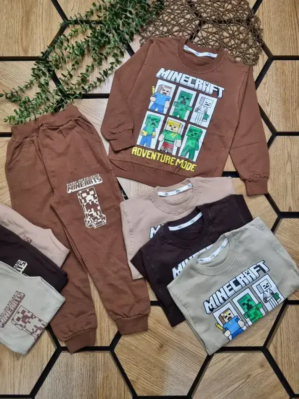 خرید عمده بلوز شلوار پسرانه طرح ماینکرفت مدل Adventure Mode
