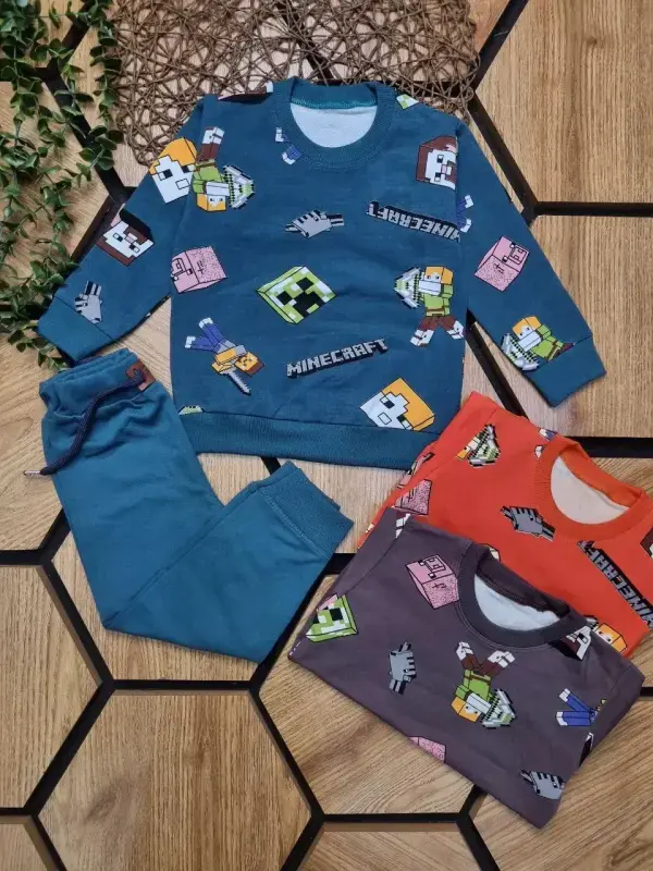 خرید عمده بلوز شلوار پسرانه طرح ماینکرفت