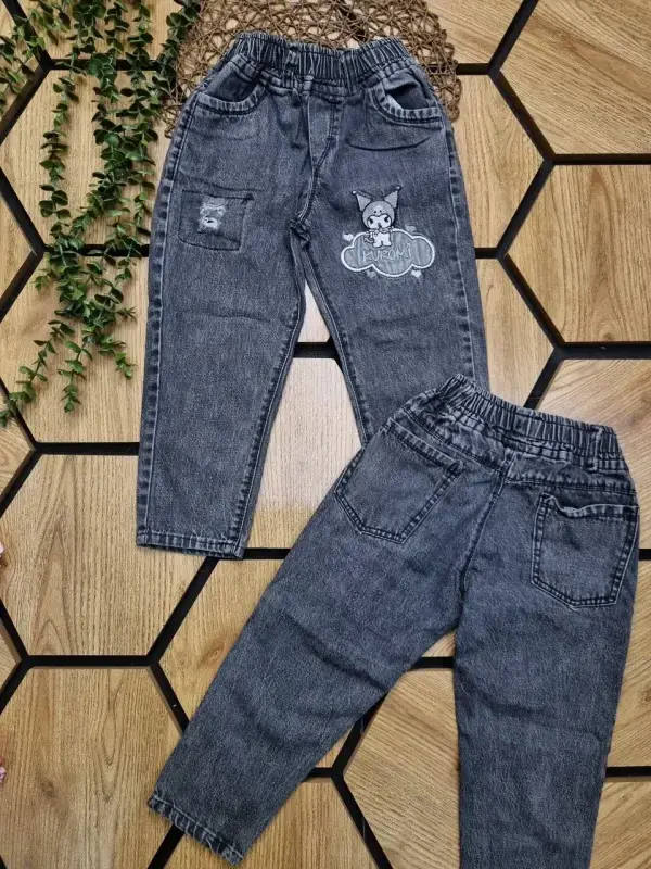 خرید عمده شلوار لی مام دخترانه طرح کوورومی