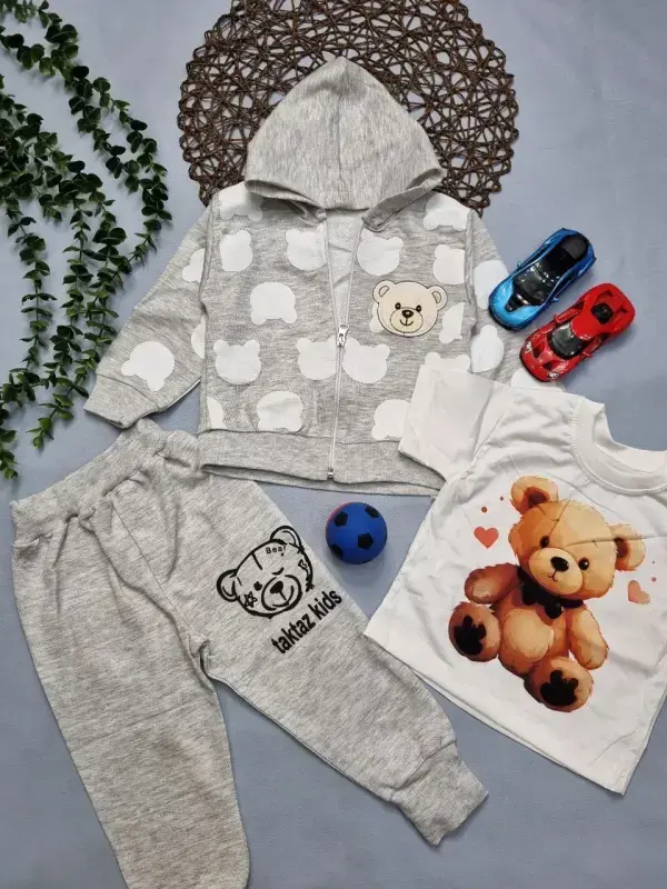 ست سه تکه سویشرت، تیشرت و شلوار دخترانه طرح خرس