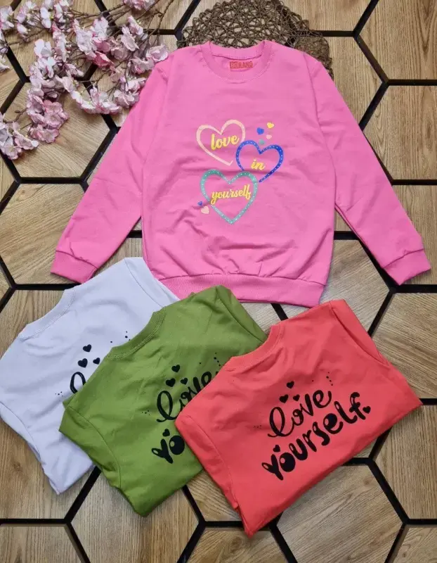خرید عمده بلوز دخترانه طرح Love in yourself