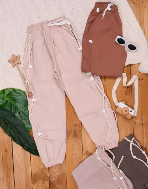 شلوار کتان دخترانه دمپا گت بغل طنابی - کالکشن پاییزه کد 10947