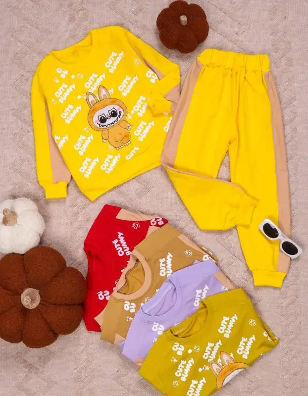 خرید عمده بلوز شلوار بچگانه طرح خرگوش بامزه رنگ زرد