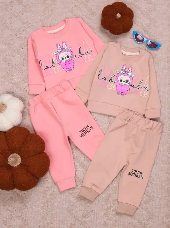 خرید عمده بلوز شلوار بچگانه طرح خرگوش بامزه در دو رنگ و سه سایز