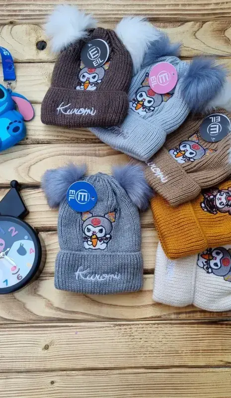 خرید عمده کلاه تک کرومی پومدار بچگانه مناسب 2 تا 7 سال