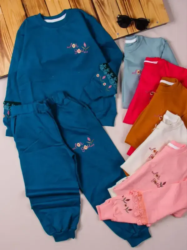 خرید عمده ست بلوز شلوار دخترانه آستین گیپور نورا