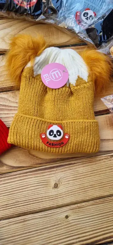 خرید عمده کلاه زمستانی بچگانه چراغدار خزدار طرح پاندا مناسب 2 تا 5 سال