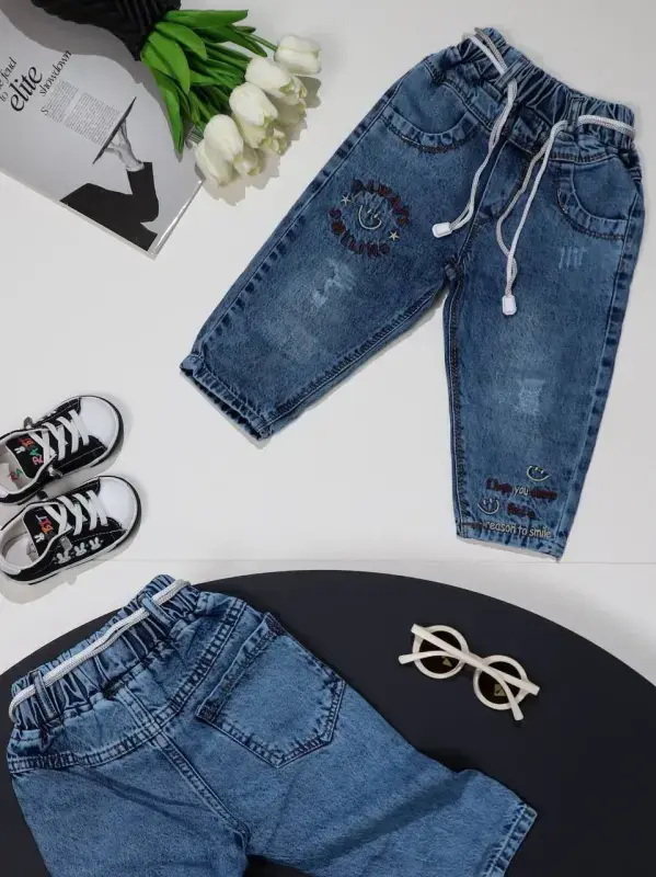 با خرید عمده شلوار جین بچگانه طرح لبخند، مجموعهی پوشاک خود را با محصولی پرفروش و با کیفیت ارتقا دهید. این محصول گزینهای عالی برای تولیدکننده پوشاک و یا فروشگاههایی است که به دنبال محصولات با کیفیت و مورد تقاضا هستند.