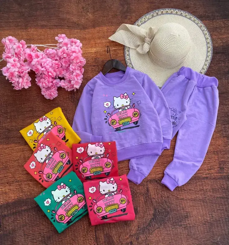 خرید عمده ست بلوز شلوار دخترانه طرح کیتی | مناسب 2 تا 7 سال
