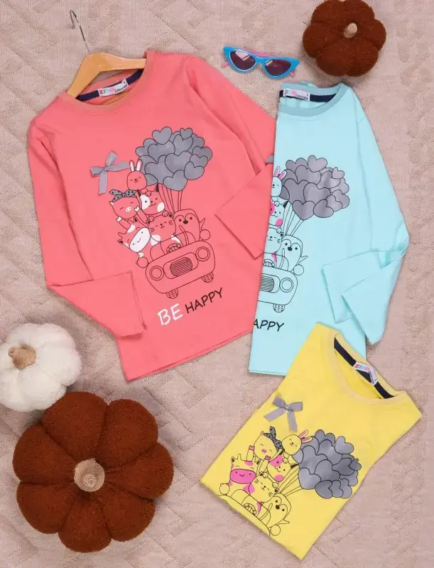 خرید عمده بلوز دخترانه طرح ماشین و قلب