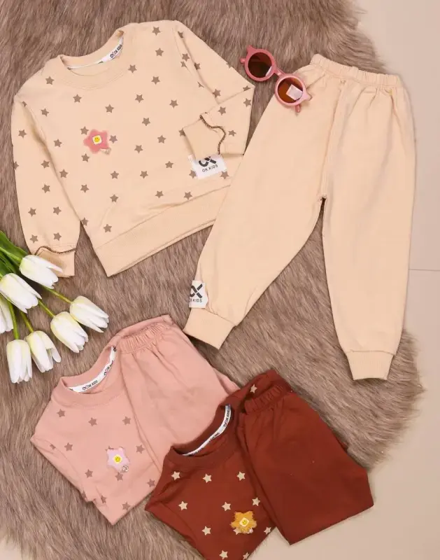 خرید عمده بلوز شلوار دخترانه طرح ستاره و گل پنبه درجه یک