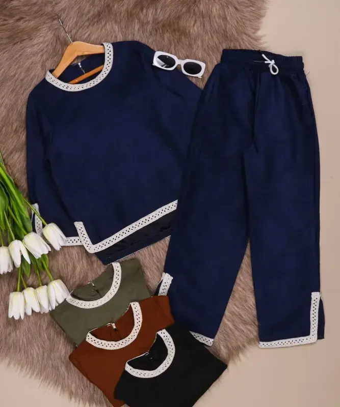 شومیز شلوار بگ سوییت بچگانه یقه و پایین گیپور