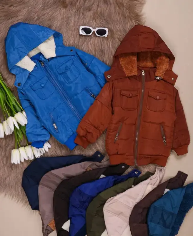 خرید عمده کاپشن پسرانه دو جیب با آستر پشمی در سایزهای مختلف