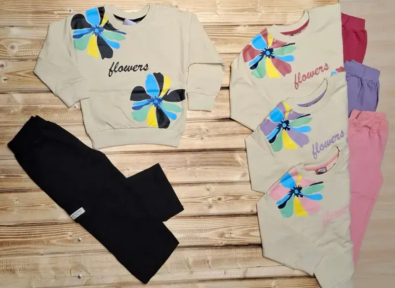خرید عمده بلوز شلوار پاییزه دخترانه طرح گل