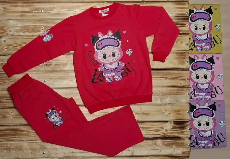 خرید عمده بلوز شلوار پاییزه دخترانه طرح لا بوبو کد 32214