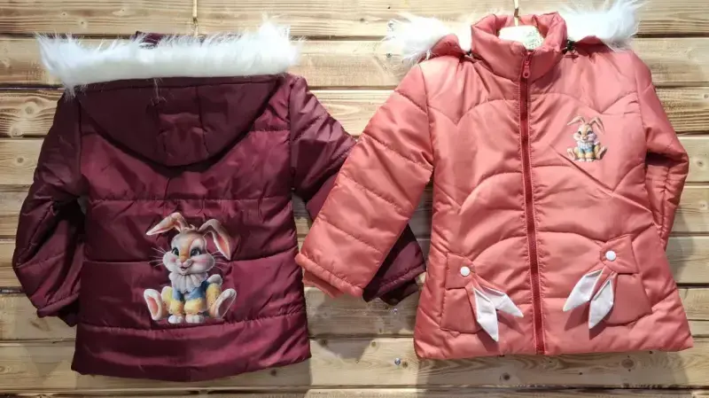 خرید عمده کاپشن دخترانه طرح خرگوش با خز سفید