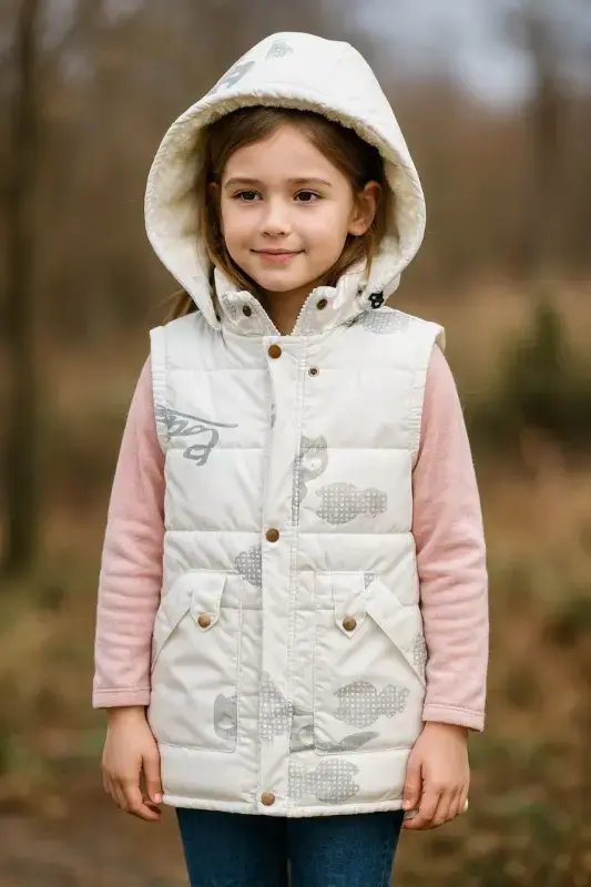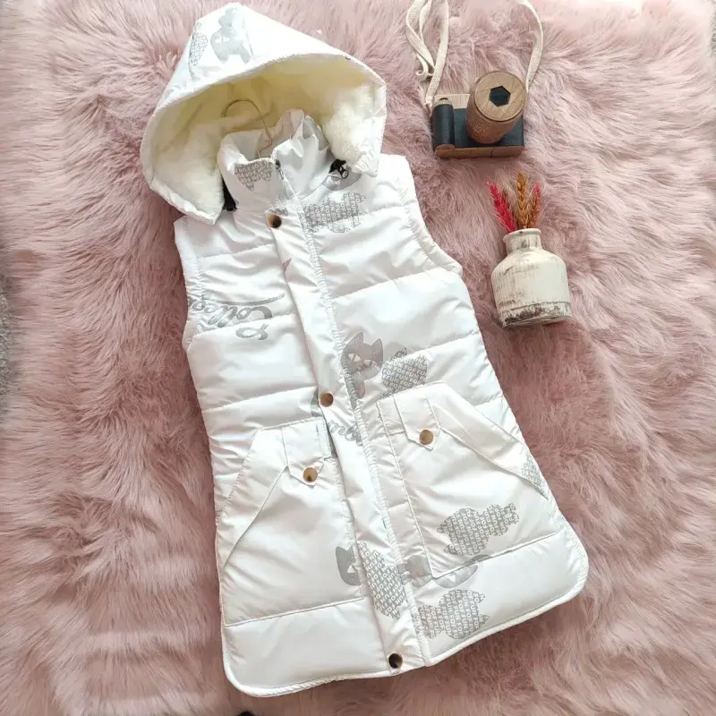 خرید عمده کاپشن پافر دخترانه طرح گربه مناسب 7 تا 9 سال