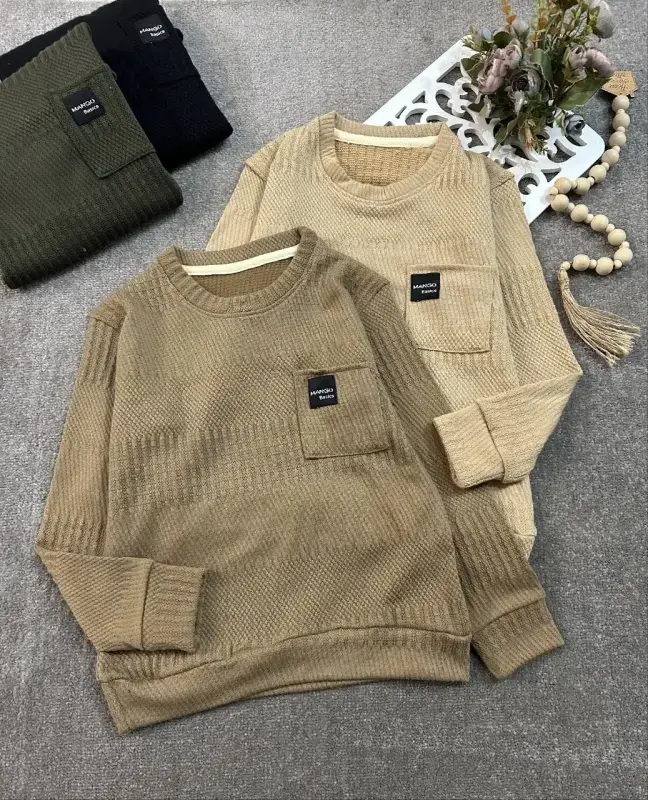 خرید عمده بلوز بافتنی پسرانه تک جیب منگو