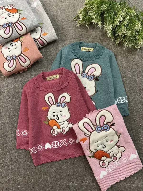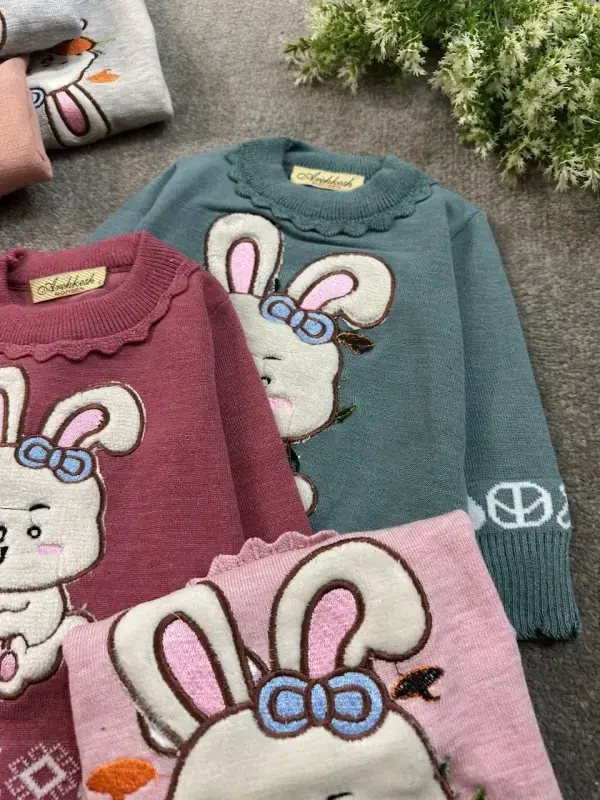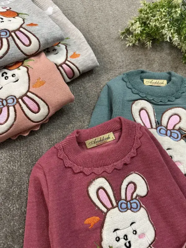 بافت دخترانه طرح خرگوش هویج بدست - مناسب خرید عمده پوشاک