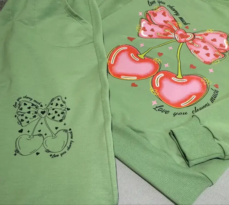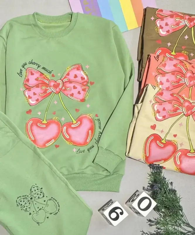 خرید عمده بلوز شلوار دخترانه طرح پاپیون و گیلاس