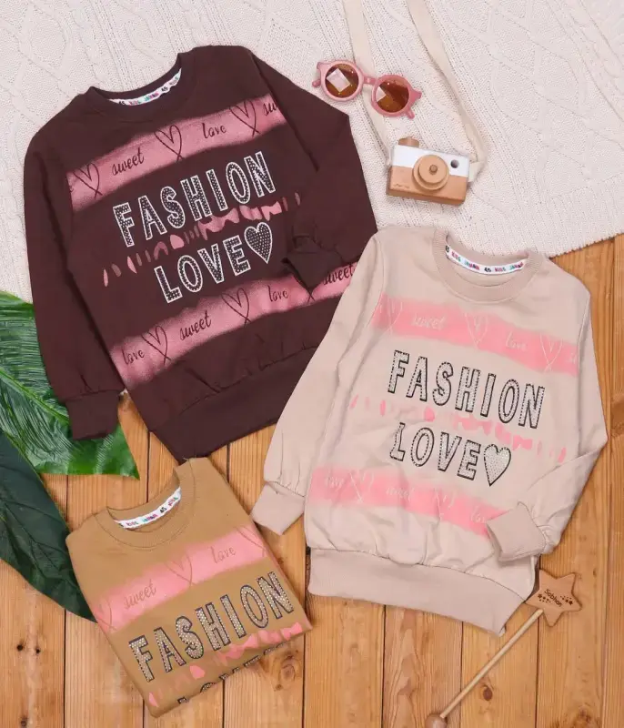 خرید عمده بلوز دخترانه طرح قلب و نگین کالکشن پاییزه