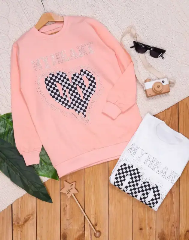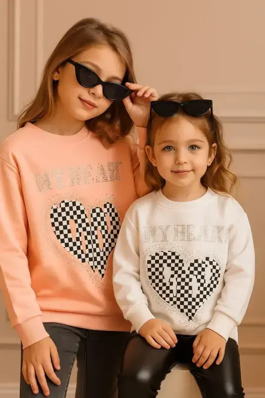 خرید عمده بلوز دخترانه مجلسی طرح قلب شطرنجی پاییزه