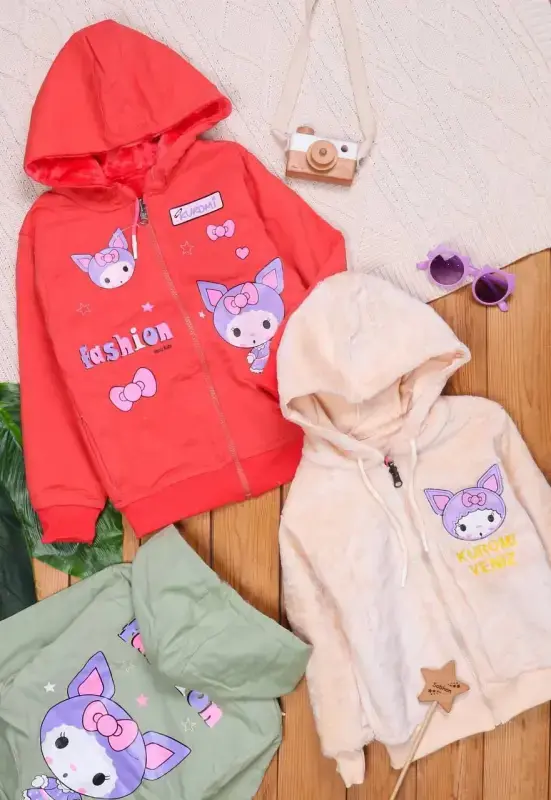 خرید عمده کالکشن پاییزه: سویشرت دو رو بچه گانه کرومی با چاپ پشت، تمام خز و کتان، در 3 رنگ و سایزهای 35 تا 50