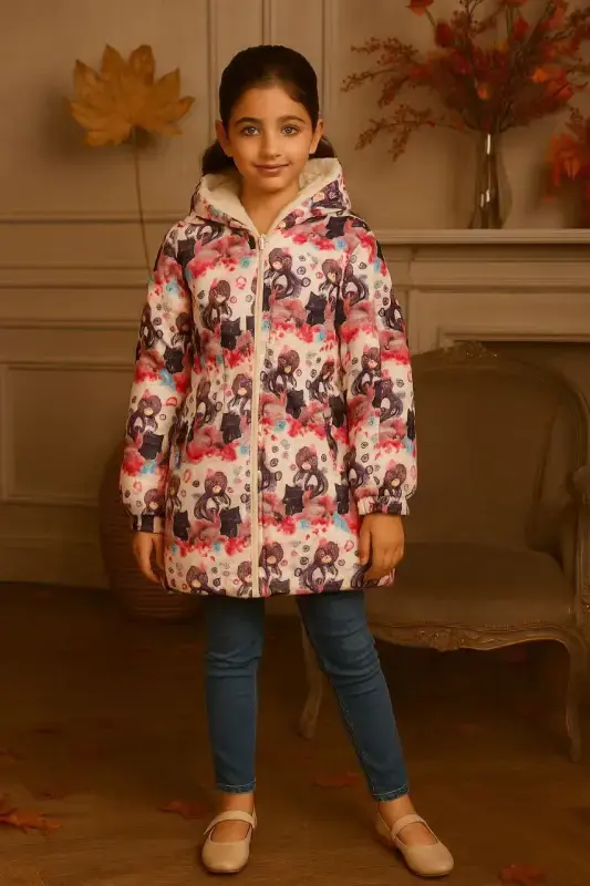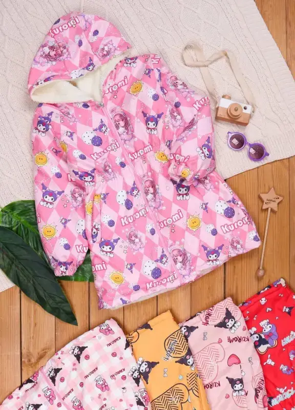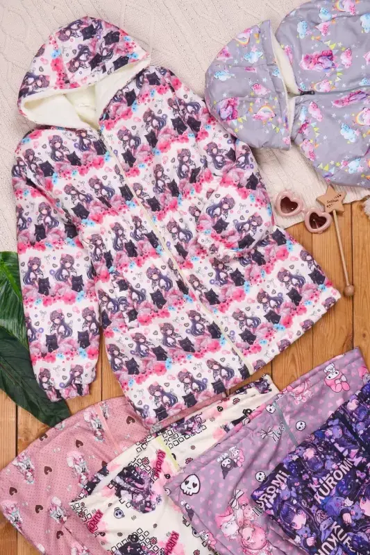 خرید عمده کالکشن پاییزه دخترانه: سویشرت داخل خز با چاپ میکس کرومی
