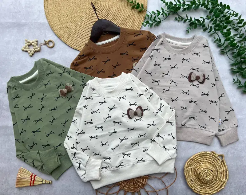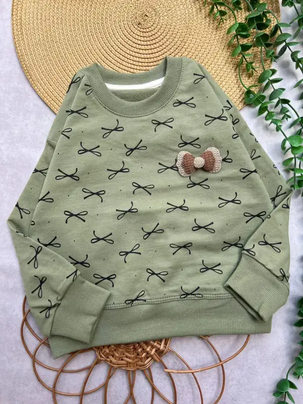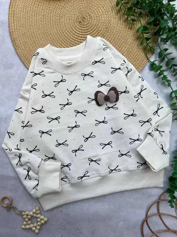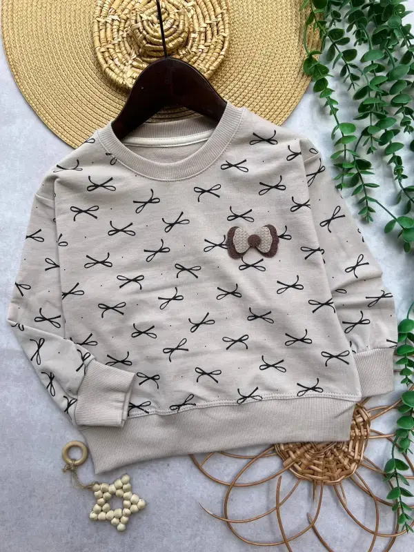 خرید عمده بلوز دخترانه تمام چاپ پاپیونی برجسته