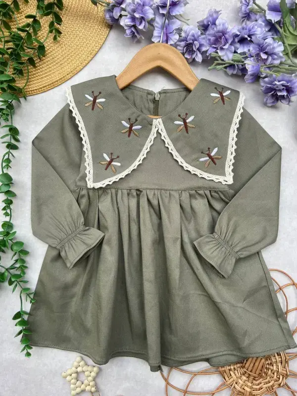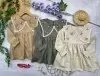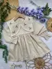 خرید عمده سارافون دخترانه یقه پروانه آستین دار از جنس کتان درجه یک
