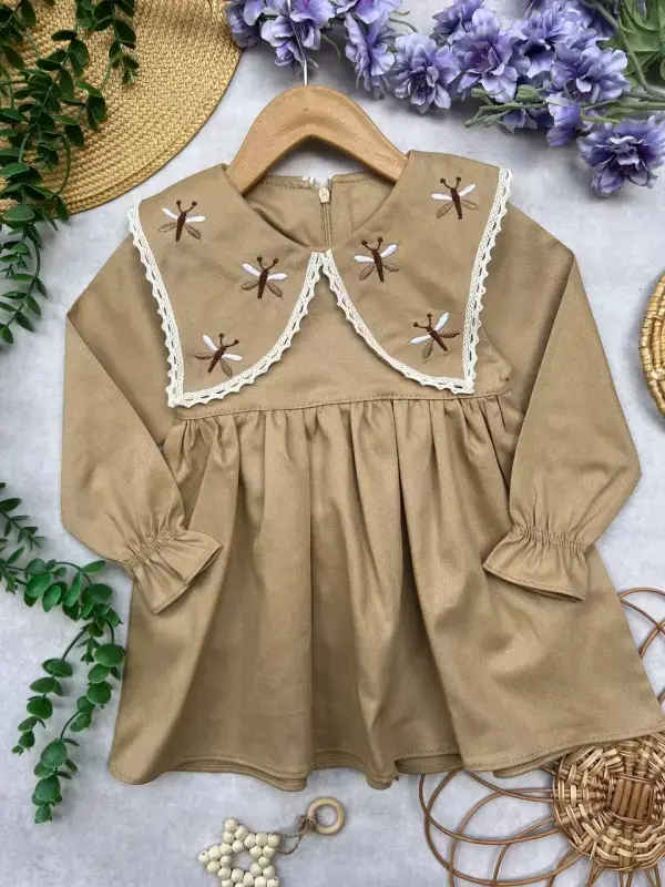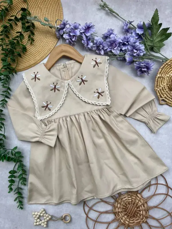 این سارافون دخترانه با طراحی یقه پروانه و آستینهای کاربردی، انتخابی ایدهآل برای تکمیل کلکسیون پوشاک شماست. مناسب برای عرضه در بوتیکها و فروشگاههای آنلاین پوشاک.