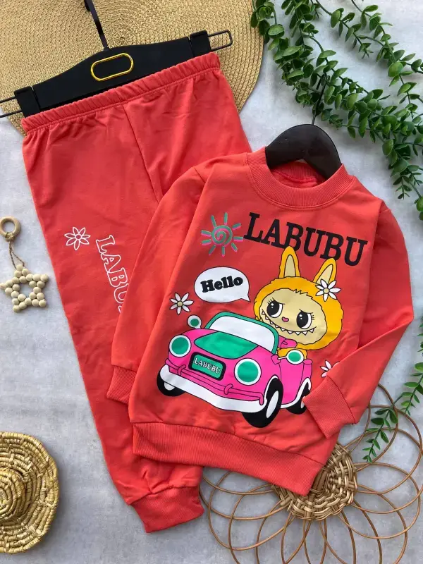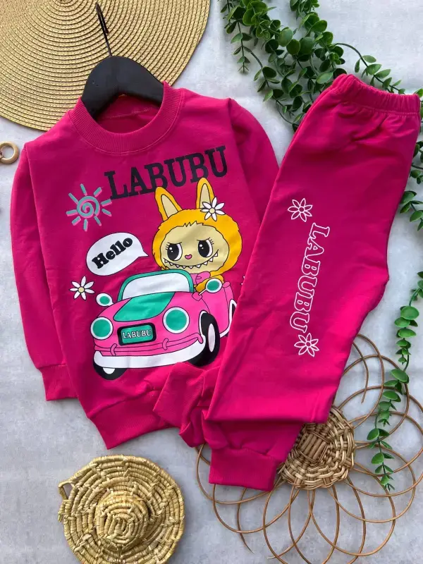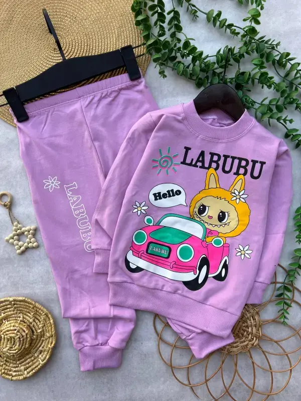 خرید عمده بلوز شلوار دخترانه طرح لبوبو مدل Hello Car