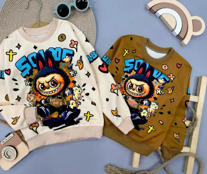 خرید عمده بلوز پسرانه و دخترانه طرح هاپو و گربه با چاپ ثابت