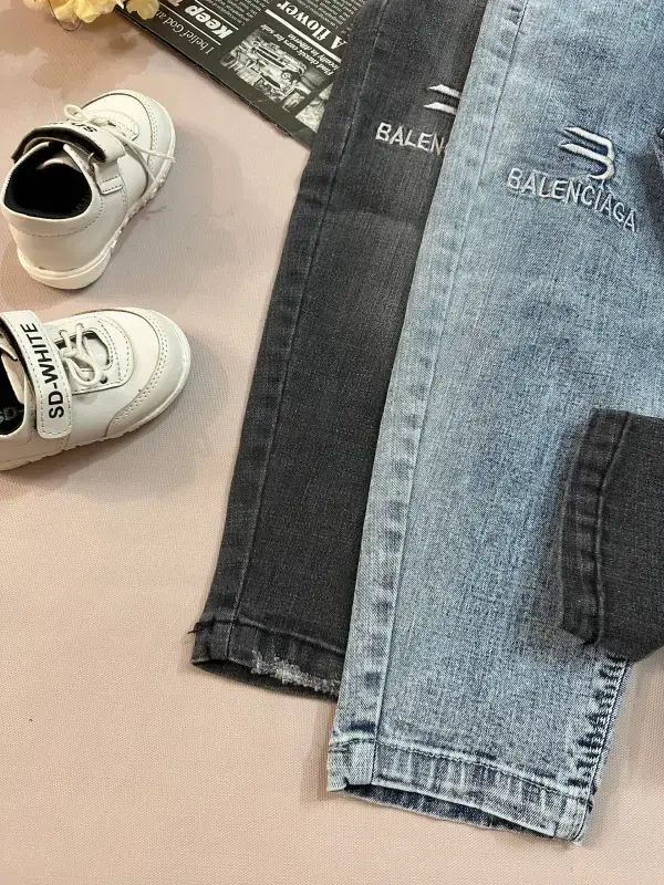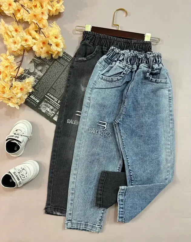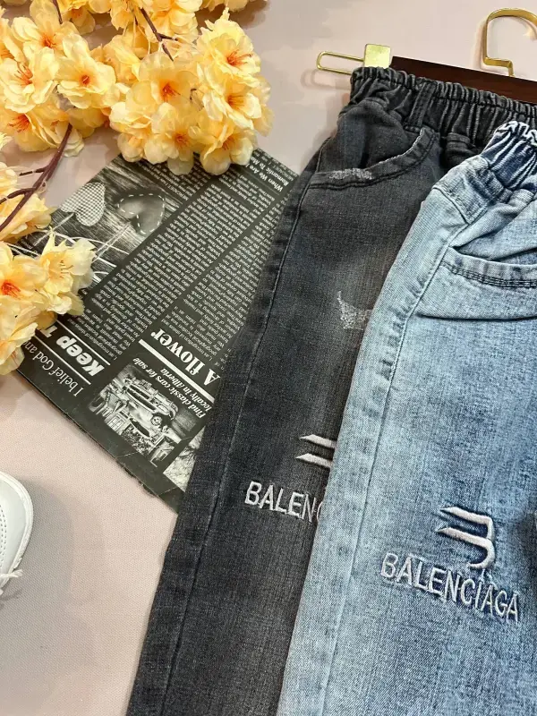 خرید عمده شلوار لی مام استایل بالنسیاگا اسلپ فول کش بچگانه