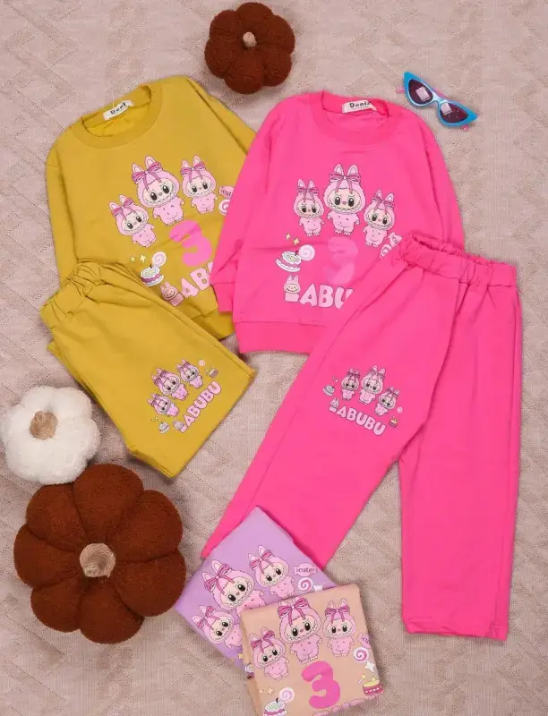 خرید عمده بلوز شلوار دخترانه طرح بابو سایز 40-45