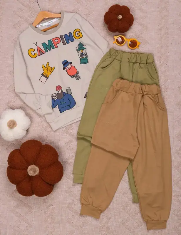 خرید عمده بلوز شلوار بچگانه طرح کمپینگ