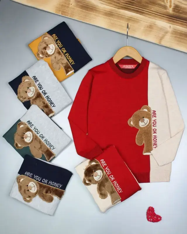 پلیور بافت یقه گرد تدی پولیشی دخترانه - کالکشن پاییزه
