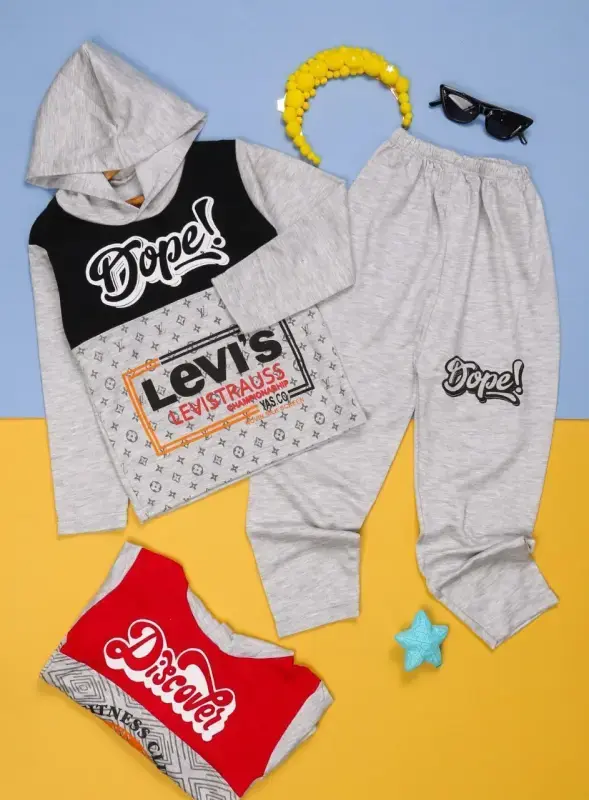 ارائه دهنده هودی شلوار پسرانه با طرح جذاب Levi's، کد محصول 6729. این ست شامل هودی و شلوار بوده و انتخابی ایدهآل برای تکمیل کمد لباس پسران است.