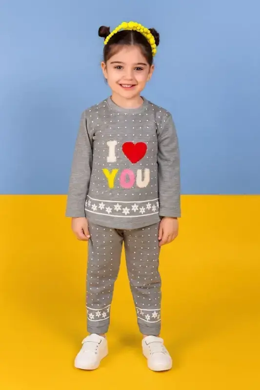 خرید عمده بلوز شلوار دخترانه طرح I Love You کد 6742