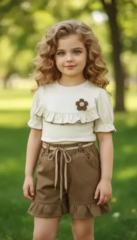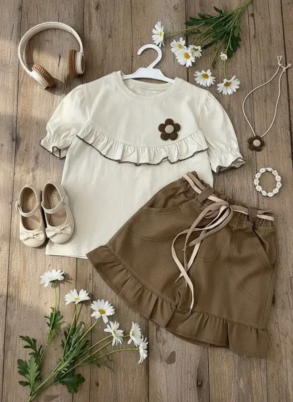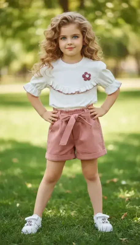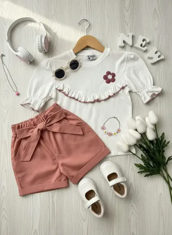 خرید عمده ست دخترانه تیشرت و شلوارک گل برجسته