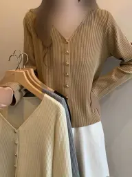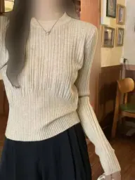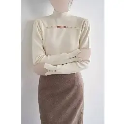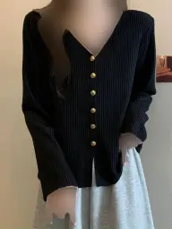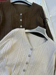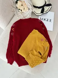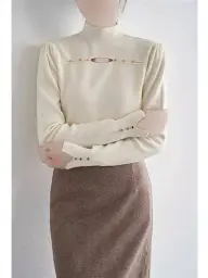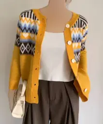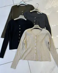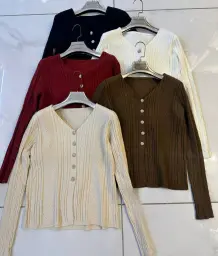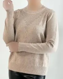بافت یقه گرد زنانه طرح کبریتی با دکمه تزئینی