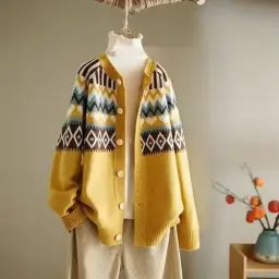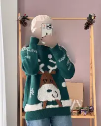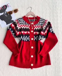 ژاکت بافت کریسمسی زنانه طرح دار فری سایز