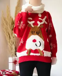 بافت کریسمسی طرح گوزن زنانه - مناسب سایز 38 تا 46