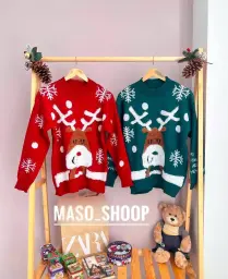 پلیور بافت کریسمسی طرح خرس و دانه برف زنانه و مردانه