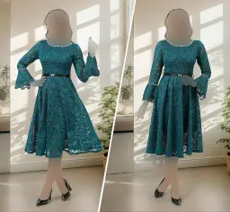 ست شومیز و دامن مجلسی زنانه دانتل مخملی