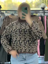 بافت یقه اسکی زنانه طرح پلنگی پاییزه