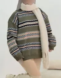 پلیور بافتنی زنانه طرح وینتیج با رنگبندی متنوع